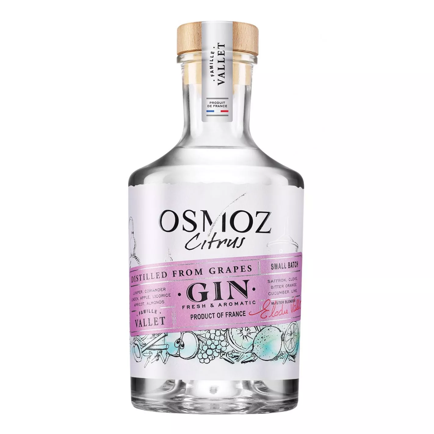 Expressive Character: Osmoz Citrus Gin embodies the fresh and vibrant spirit of Elodie Vallet, complementing the more classic rendition inspired by Laurent Vallet.